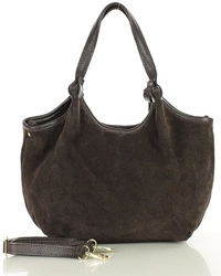 Torebka damska ciemnobrązowa zamszowa skórzana hobo bag worek MARCO MAZZINI s291c