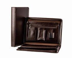 Skórzany biwuar na dokumenty aktówka A4 ciemnobrązowy czekoladowy Tizano BW17