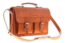 Duża skórzana teczka biznesowa torba na ramię camel - Vooc TC12