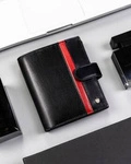 Zestaw prezentowy: skórzany portfel męski i brelok czarny - Rovicky R-SET-M-N003-GVT