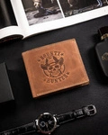 Skórzany duży portfel męski brązowy poziomy z wzorem czaszki - Always Wild N992-CHM-BOU