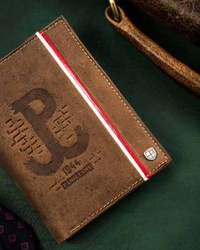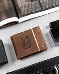 Skórzany portfel męski z motywem patriotycznym brązowy — Peterson 317PW-01 2-1-4