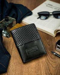 Skórzany męski portfel pionowy z dwukolorowej skóry naturalnej RFID Rovicky D1072-VT2 BLACK-RED