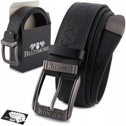 Skórzany pasek męski czarny premium skóra licowa - Beltimore E36