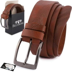 Skórzany pasek męski brązowy premium szeroki - Beltimore Jeans E34