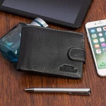 Skórzany portfel męski czarny z zapięciem - Beltimore I46