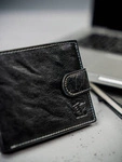 Elegancki czarny portfel męski ze skóry naturalnej - Rovicky PC-102L-BAR