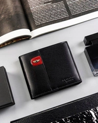 Mały skórzany portfel męski czarny poziomy - Peterson 22304-VT-E