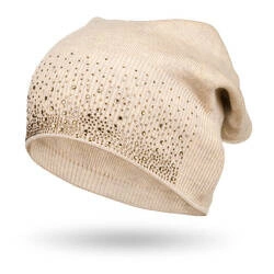 Beżowa czapka zimowa damska beanie z kryształkami - Peterson HAT-01