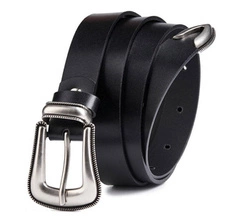 Skórzany pasek męski czarny ze srebrną klamrą Rovicky PRS-08-ARS
