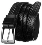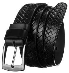 Skórzany pasek męski ze wzorem plecionki czarny Peterson PTN PRS-02-G