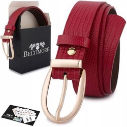 Skórzany pasek damski czerwony do spodni sukienki - Beltimore D93
