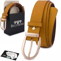 Skórzany pasek damski camelowy do spodni sukienki - Beltimore B86