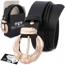 Skórzany pasek damski do spodni sukienki czarny - Beltimore D92