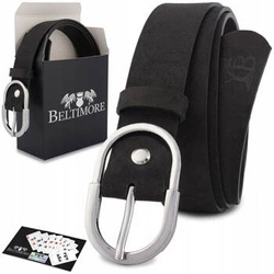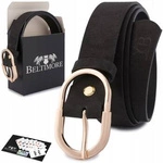 Skórzany pasek damski zamszowy czarny do spodni sukienki - Beltimore D97