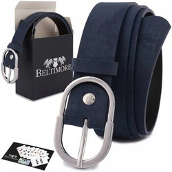 Skórzany pasek damski granatowy do spodni sukienki zamszowy - Beltimore D98