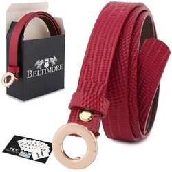 Skórzany pasek damski czerwony do spodni sukienki - Beltimore D93