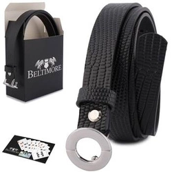 Skórzany czarny pasek damski do spodni sukienki croco - Beltimore E54