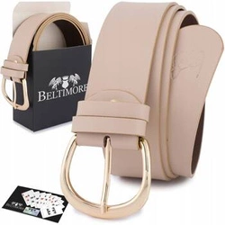 Skórzany pasek damski cielisty do spodni sukienki koła - Beltimore B08