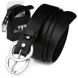 Skórzany damski pasek do spodni czarny ze srebrną klamrą typu koła Beltimore D51