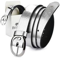 Skórzany pasek damski srebrny do sukienki Beltimore U48