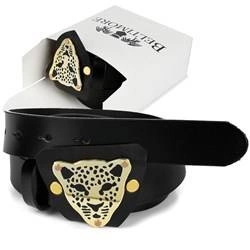 Skórzany pasek damski do spodni klarma z gepardem złota Beltimore A94