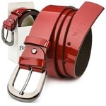 Skórzany pasek damski do spodni czerwony lakierowany Beltimore A67