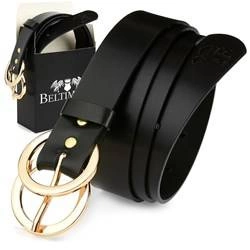 Skórzany damski pasek do spodni czarny ze złotą klamrą typu koła Beltimore D50