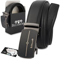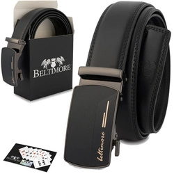 Skórzany pasek męski czarny klamra automatyczna - Beltimore A42