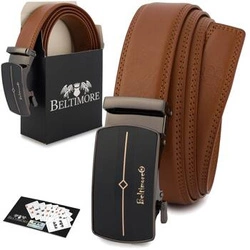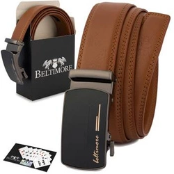 Skórzany pasek męski brązowy klamra automatyczna - Beltimore A42