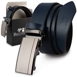 Skórzany pasek męski granatowy klamra automat Beltimore A56