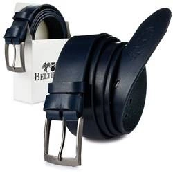 Klasyczny skórzany pasek męski granatowy - Beltimore E15