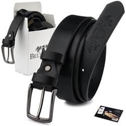 Skórzany pasek męski czarny szeroki - Beltimore E07