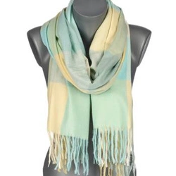 Szalik damski bawełniany ciepły szal w kratę z frędzlami żółto-zielony AX-13-19