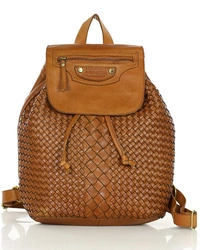 Skórzany plecak damski miejski pleciony koniak - MARCO MAZZINI VS13b