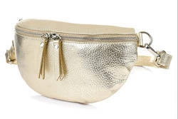 Złota skórzana saszetka nerka damska Vera Pelle B68