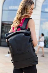 Plecak miejski roll-top z zewnętrzną kieszenią czarny - Peterson BERLIN