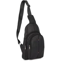 Skórzana saszetka nerka przez ramię crossbody plecak na jedno ramię czarny - F03