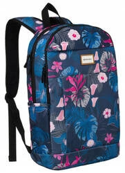 Kolorowy plecak damski miejski z poliestru w roślinny wzór niebieski - Rovicky R-PST 01