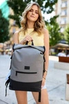Plecak miejski roll-top z zewnętrzną kieszenią szary - Peterson BERLIN