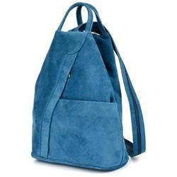 Skórzany plcak damski miejski mały plecaczek zamszowy niebieski Vera Pelle T53