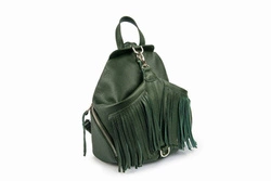 Skórzany plecak damski miejski z frędzlami boho zielony - Vooc EP17