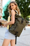Plecak miejski sportowy materiałowy khaki typu roll-top - Peterson TOKIO