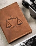 Duży skórzany portfel męski ciemnobrązowy ze znakiem zodiaku waga — Peterson N4-EBS
