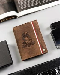 Skórzany portfel męski brązowy pionowy z motywem patriotycznym — Peterson PTN 333PW
