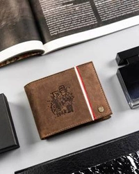 Skórzany portfel męski brązowy z motywem patriotycznym Peterson PTN 333PW