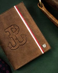 Skórzany portfel męski z motywem patriotycznym brązowy — Peterson 317PW-01 2-1-4