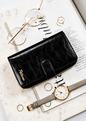 Duży skórzany portfel damski z zapięciem czarny - Peterson PL-603