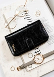 Skórzany portfel damski na zatrzask i suwak czarny - Peterson RD-46-GCL