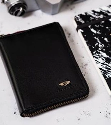Skórzany portfel męski na suwak carbon czarny — Peterson 1565-CA